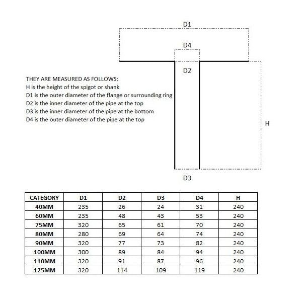 • 240mm long with a slightly cone-shaped and ribbed spigot for easy installation and preventing water backup