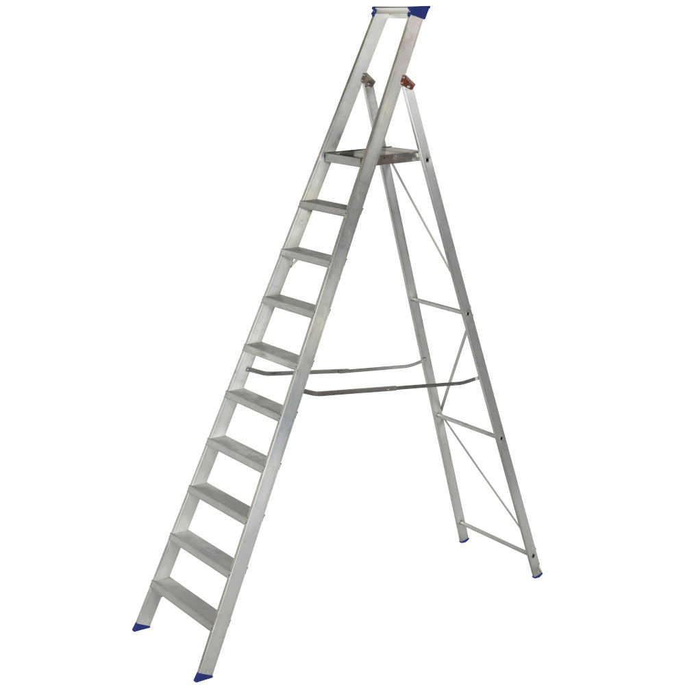 The 715010 10 tread MasterTrade Platform Stepladder is a solid and reliable aid for professional work. Features include heavy duty internal spreaders, top edge caps for a smoother profile and large slip resistant feet. The platform height of this ladder is 0.86m. Suitable for professional use.