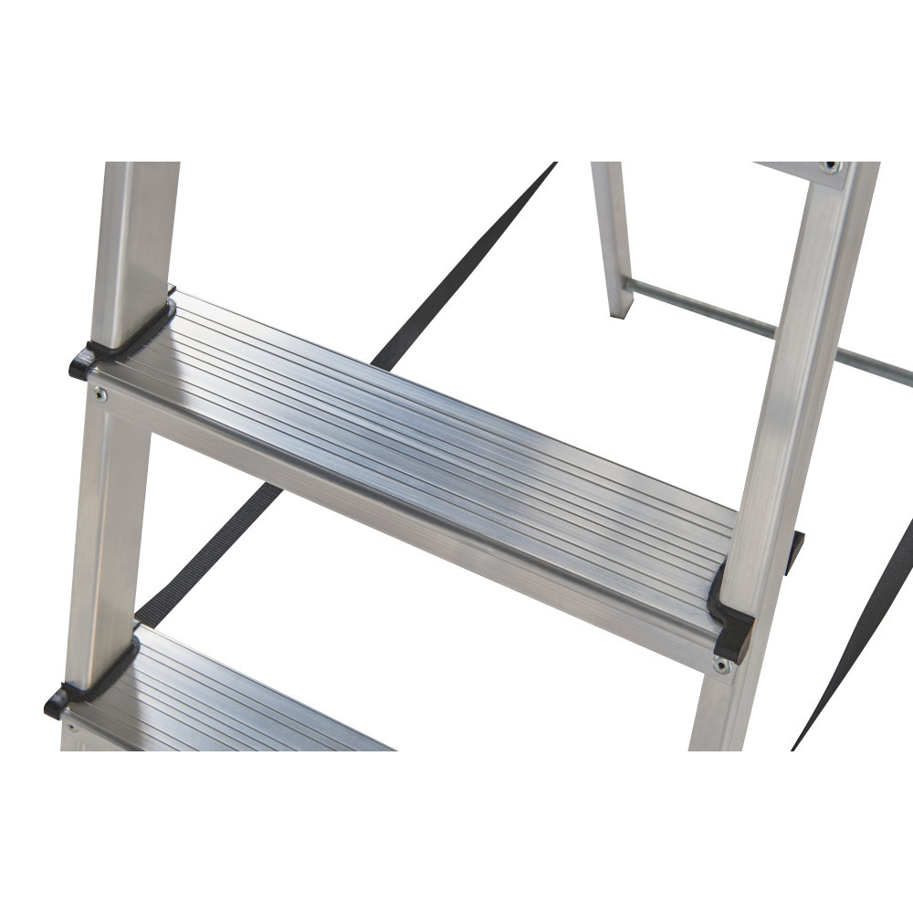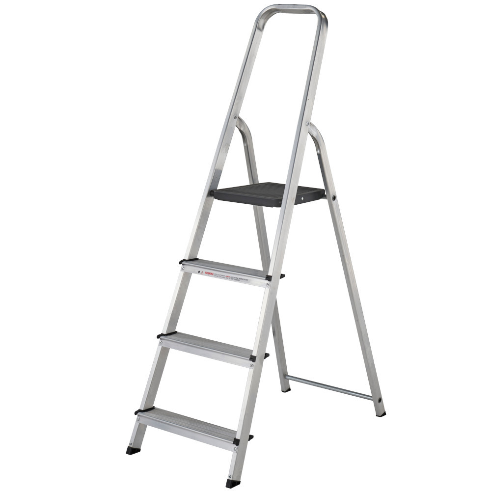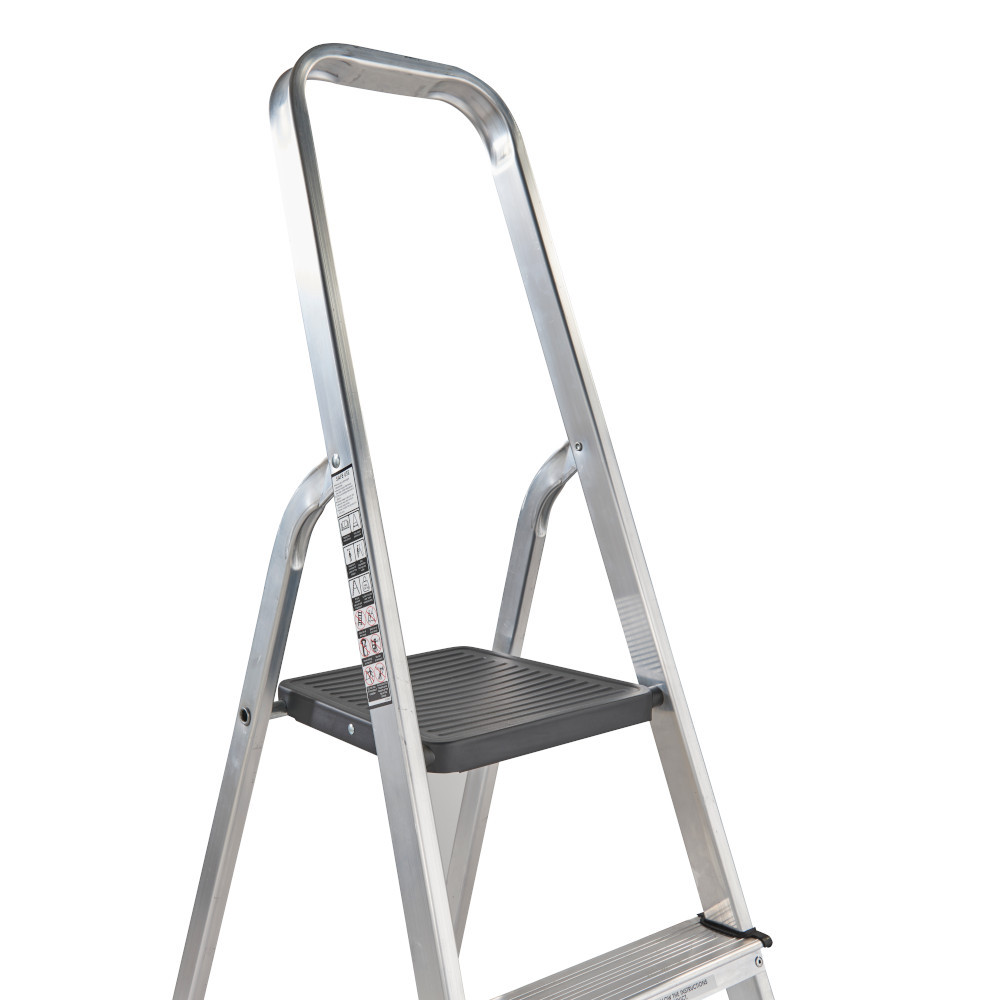 The 74004 4 tread High Handrail Aluminium Stepladder features a large slip-resistant feet, high safety handrail, and treads for added stability, Suitable for both professional and domestic use.