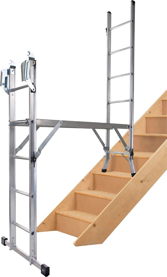 • Combines a stepladder, extension ladder, stairwell ladder , level platform and stair platform all in one product