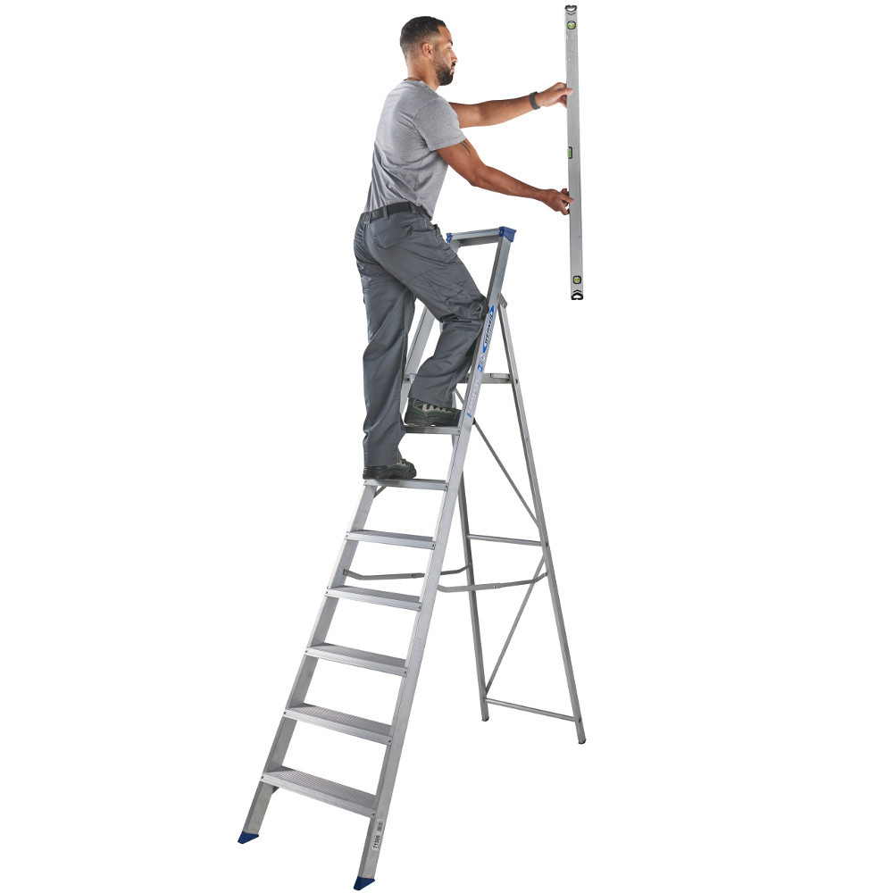 The 71508 8 tread MasterTrade Platform Stepladder is a solid and reliable aid for professional work. Features include heavy duty internal spreaders, top edge caps for a smoother profile and large slip resistant feet. The platform height of this ladder is 0.86m. Suitable for professional use.