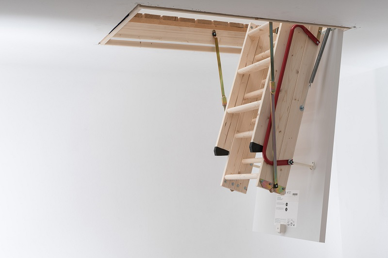 The loft ladder stores within the trapdoor so no loft floor space or headroom in the loft is used.
