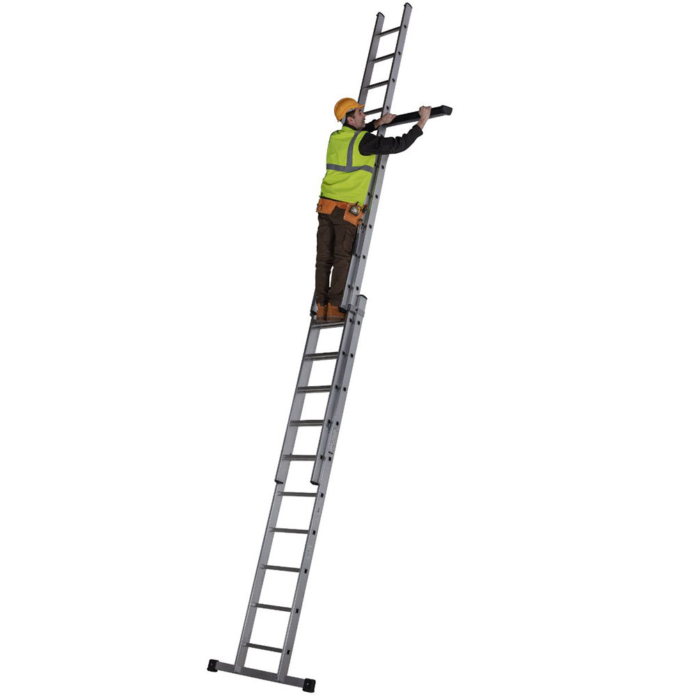 The Youngman Trade 200 3-Section Push Up Extension Ladder is the most popular Youngman trade ladder which extends to a height of 9.18m to enable a safe working height of 9.58m at 150kg load capacity.